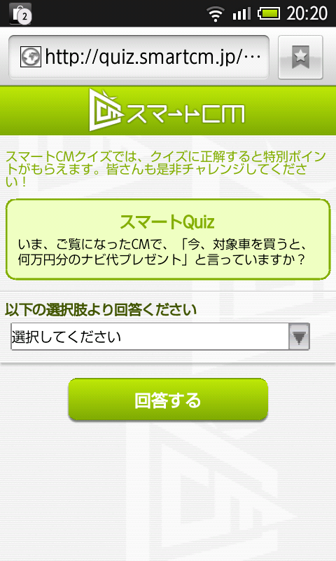 スマートCMに追加されて以来、1度もやることが出来なかったクイズ機能ですが、 昨日はじめてやることが出来ました。